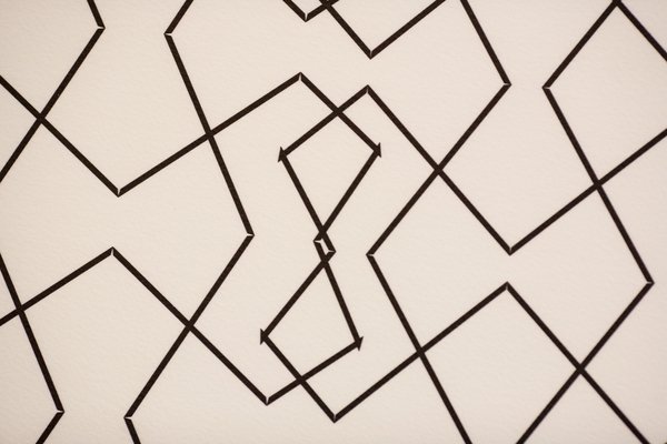 simple rule: each one of the black geometric shapes drawn “must touch its peers at the corners”. As for the